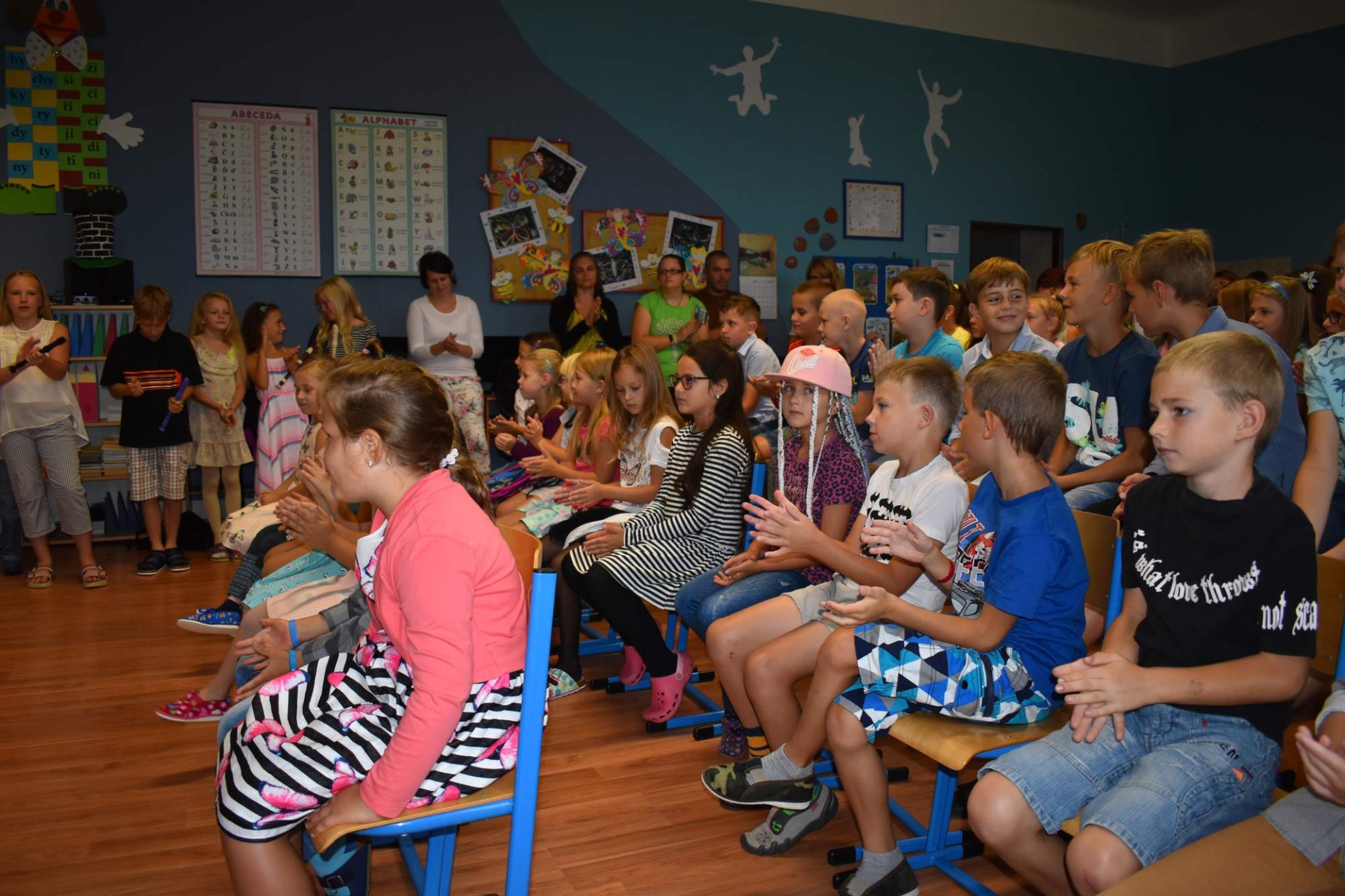... a tak jsme začali ... s tím rokem školním. Všichni se zjevně již nemohli dočkat a plni nových sil a odhodlání vkročili před osmou hodinou ranní do třídy (samosebou až na Marušku B., která si tradičně prázdniny protáhla), aby vyslechli hymnu, projevy, minikoncert starších žáků a hlevně uvítali naše nejmladší spolužáky, žáky prvního ročníku. Vítáme tě do řad školáků Julie Bínová, Elizabeth Černá, Petře Gavroni, Veroniko Hanušová, Nelo Ješinová, Lukáši Krejčí a Sabino Toczková. Ať se Vám ve škole daří a hlavně líbí.