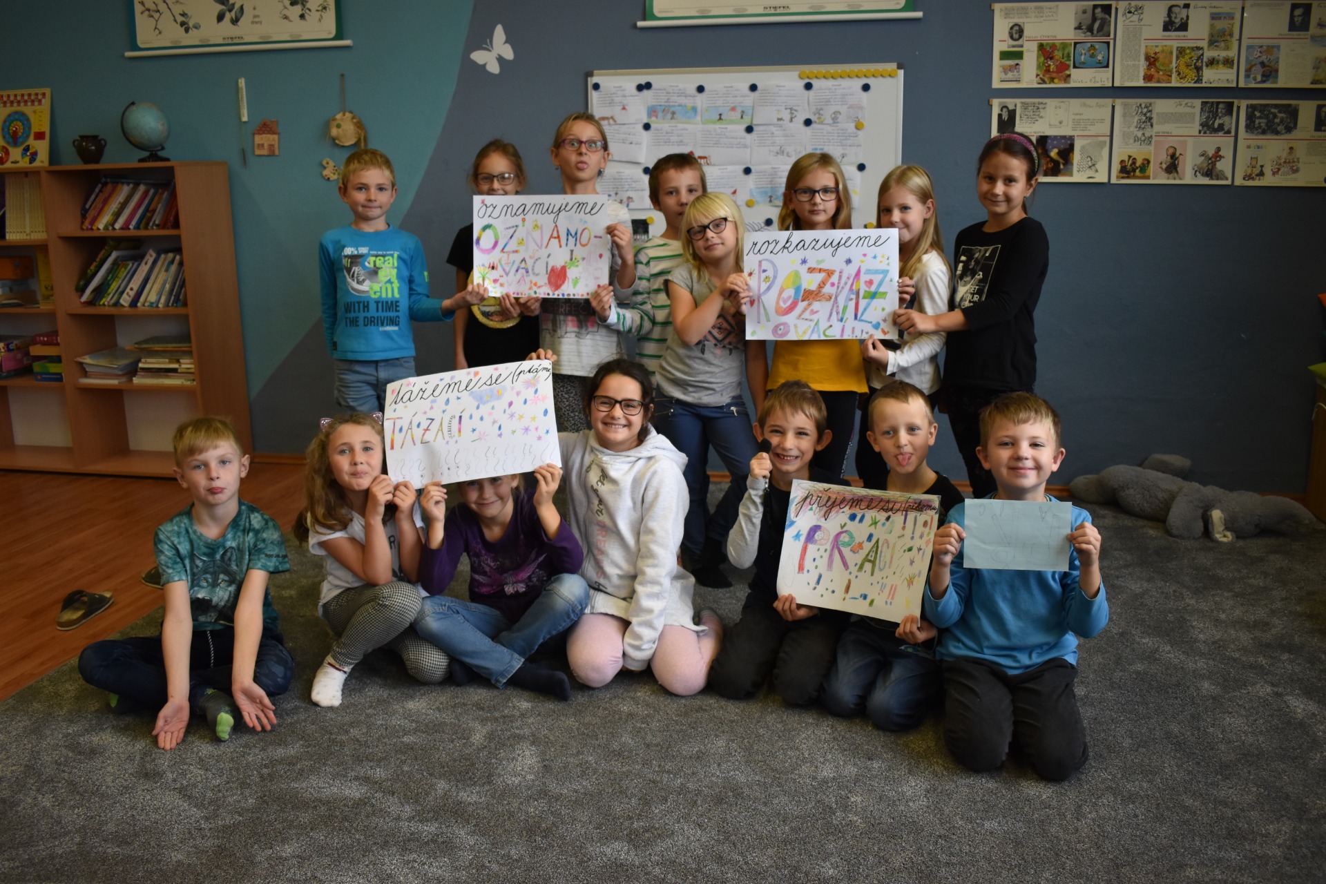 ... a tak jsme začali ... s tím rokem školním. Všichni se zjevně již nemohli dočkat a plni nových sil a odhodlání vkročili před osmou hodinou ranní do třídy (samosebou až na Marušku B., která si tradičně prázdniny protáhla), aby vyslechli hymnu, projevy, minikoncert starších žáků a hlevně uvítali naše nejmladší spolužáky, žáky prvního ročníku. Vítáme tě do řad školáků Julie Bínová, Elizabeth Černá, Petře Gavroni, Veroniko Hanušová, Nelo Ješinová, Lukáši Krejčí a Sabino Toczková. Ať se Vám ve škole daří a hlavně líbí.