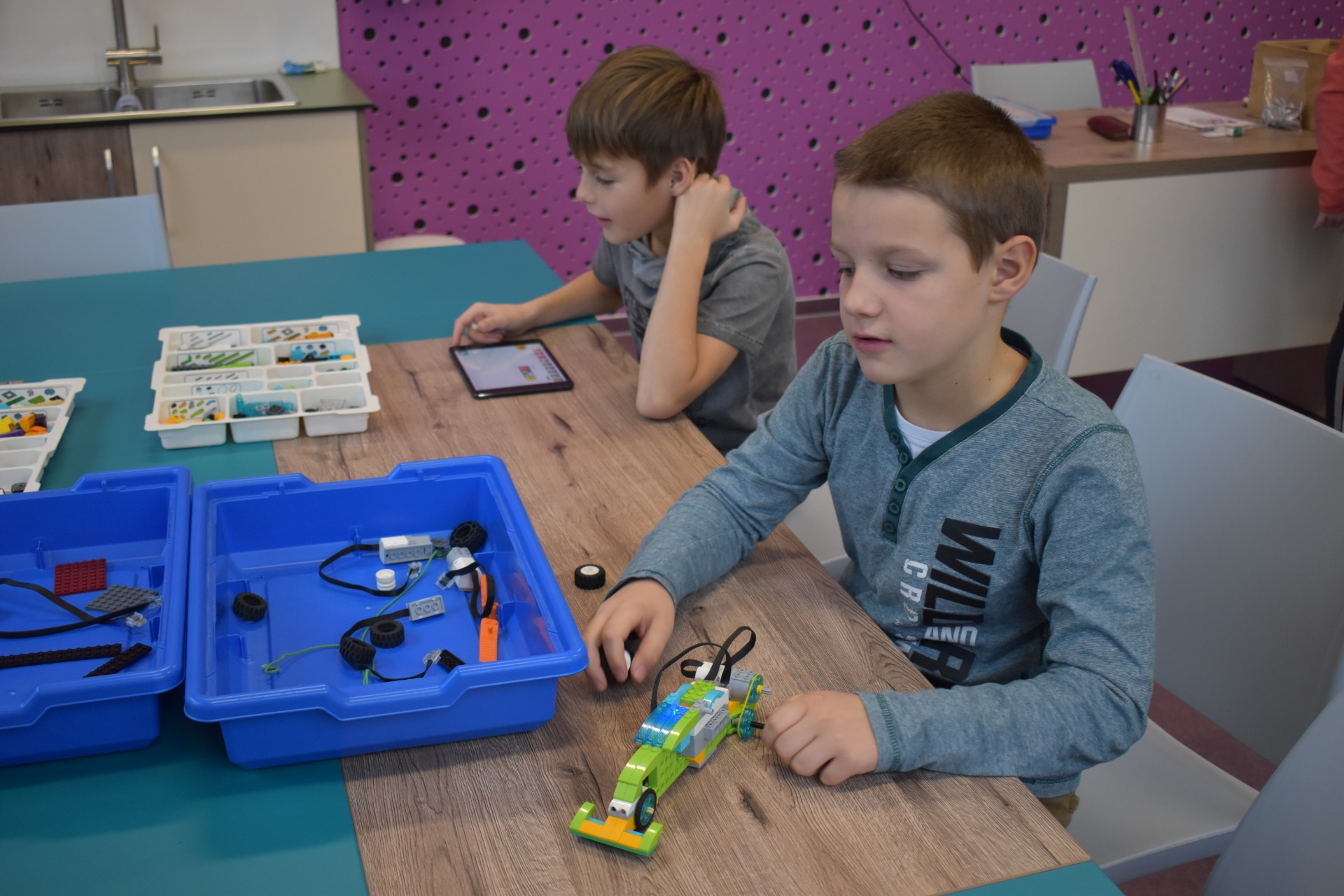 Lego Robotics ... Když postavíž robota a ještě ho můžeš ovládat pomocí tabletu, to se pak přímo nabízí dát si závod. A takový pro čtvrťáky uspořádala agentura Veselé kostky.