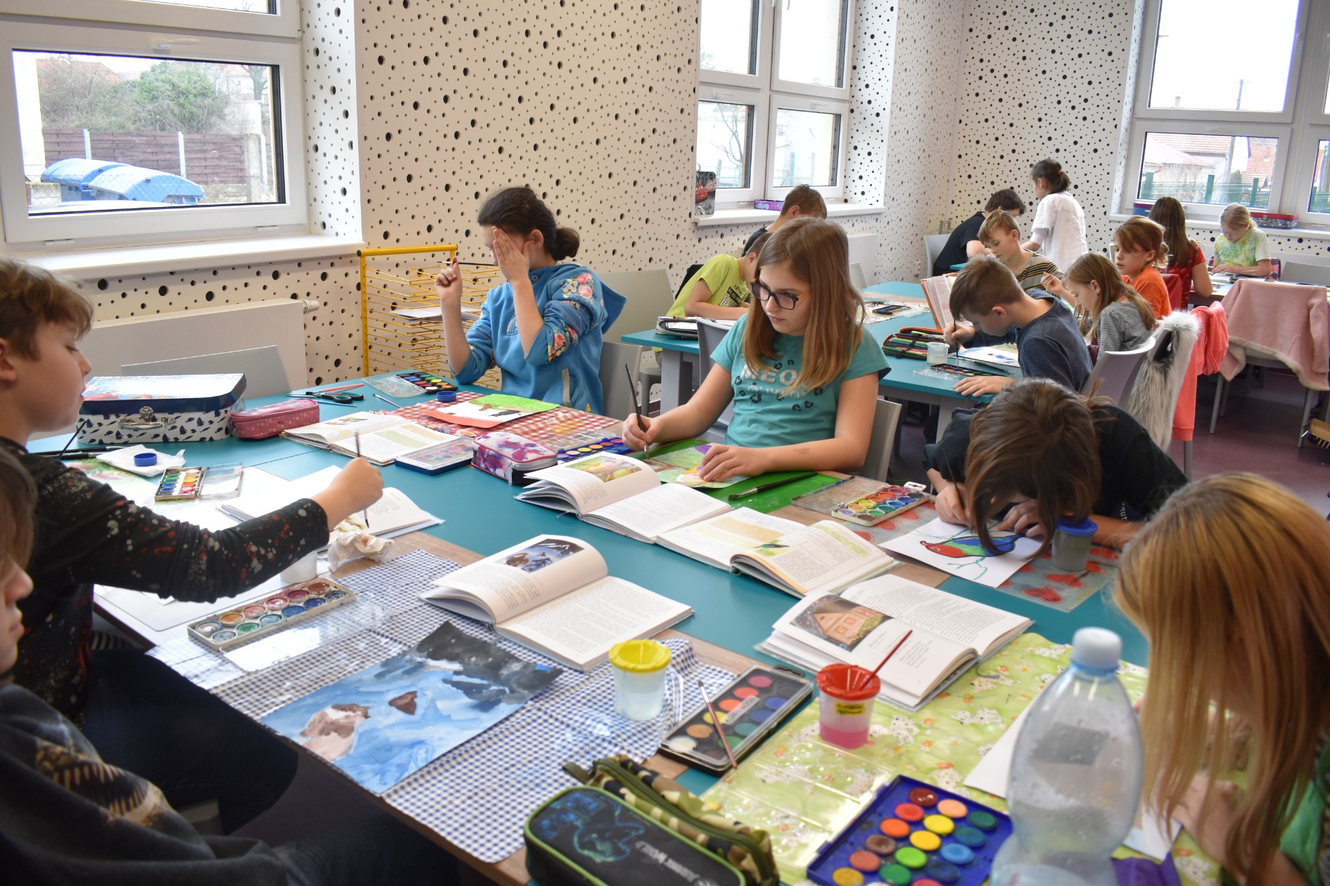 Malování na chodníku ... ... přestože se sluníčko schovalo za mrak a ten si vyždímal mokrý kapesník, dostavilo se několik dětí, aby kresbičkou přivítalo začátek školy a prvňáčky.